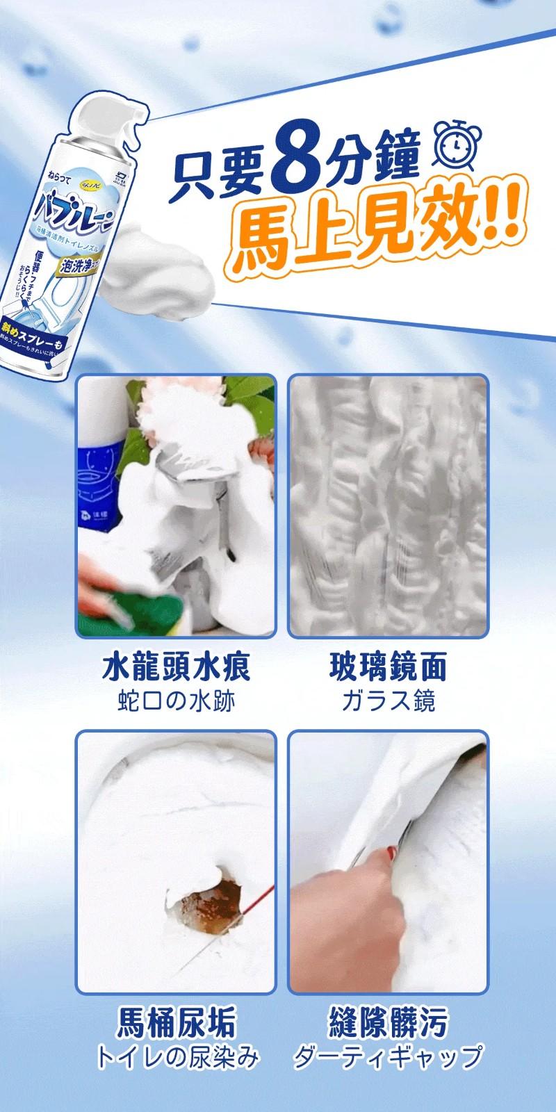 5分鐘前雪泡淨浴廁清潔慕斯 ,馬桶不刷也能亮 , 浴室清潔一瓶搞定 - 【買五送三】【MokoClean雪泡淨】8入組,團購好友分享 免運 NT$1299
